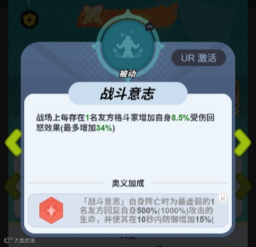 UR陈国汉:被动皮糙肉厚,首次生命低于50%增加自身1.2%(2.4%)每秒生命回复与15%(30%)免暴持续15秒。这个回复速度和量在高强度对战中实数平庸。指令选择可选受愈,不推荐治疗效果