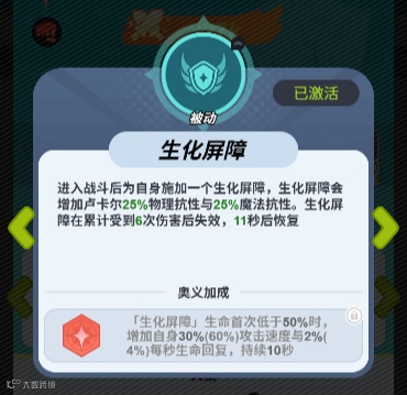 UR的山崎龙二:全技能伤害15%(30%)转换为生命+首次生命低于30%的护盾转换自身生命上限的23%转换为生命
