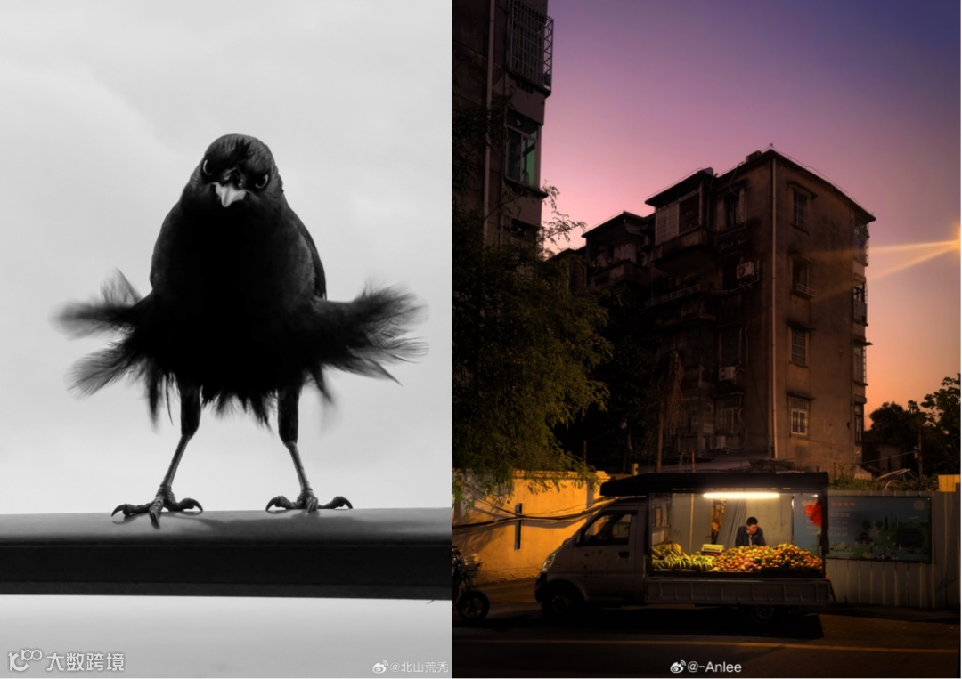 比如作品《黑裙子》是用户“北山荒秃”在八哥突然降落面前时,用iPhone拍下了小鸟抖动羽毛如舞蹈演员着裙舞动的瞬间。《贩卖黄昏》的创作者“-Anlee”在粉色的落日余晖中,用华为手机拍下了街边的水果商贩,讲出了生活中简单场景的诗意和美好,捕捉到了平凡生活的不凡时刻。