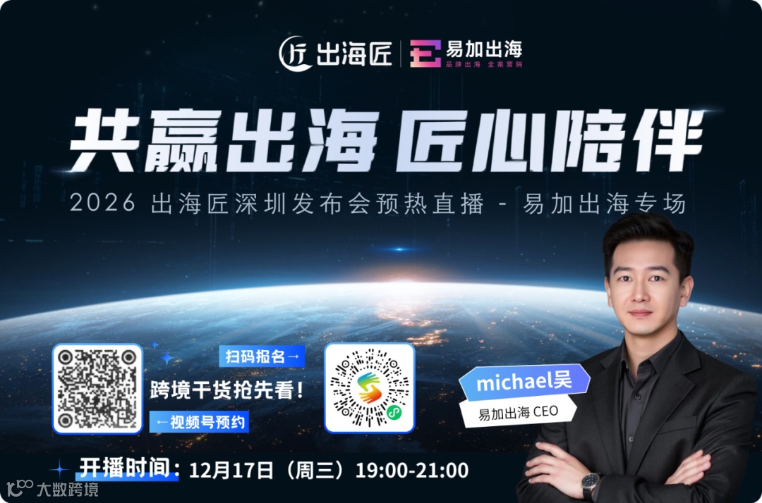 如今,他在 12 月 17 日的 2026 出海匠发布预热直播 与你面对面分享。