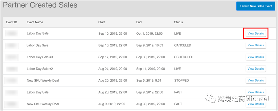 2.单击“Create New Sales Event”。