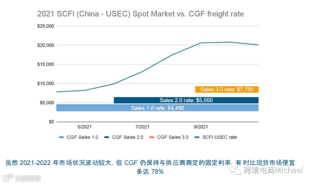✓使用 CGF 的供应商通过避免国内托卡补货的方式,保持快㏿进入多个仓库,平均节省了500-3000 美元