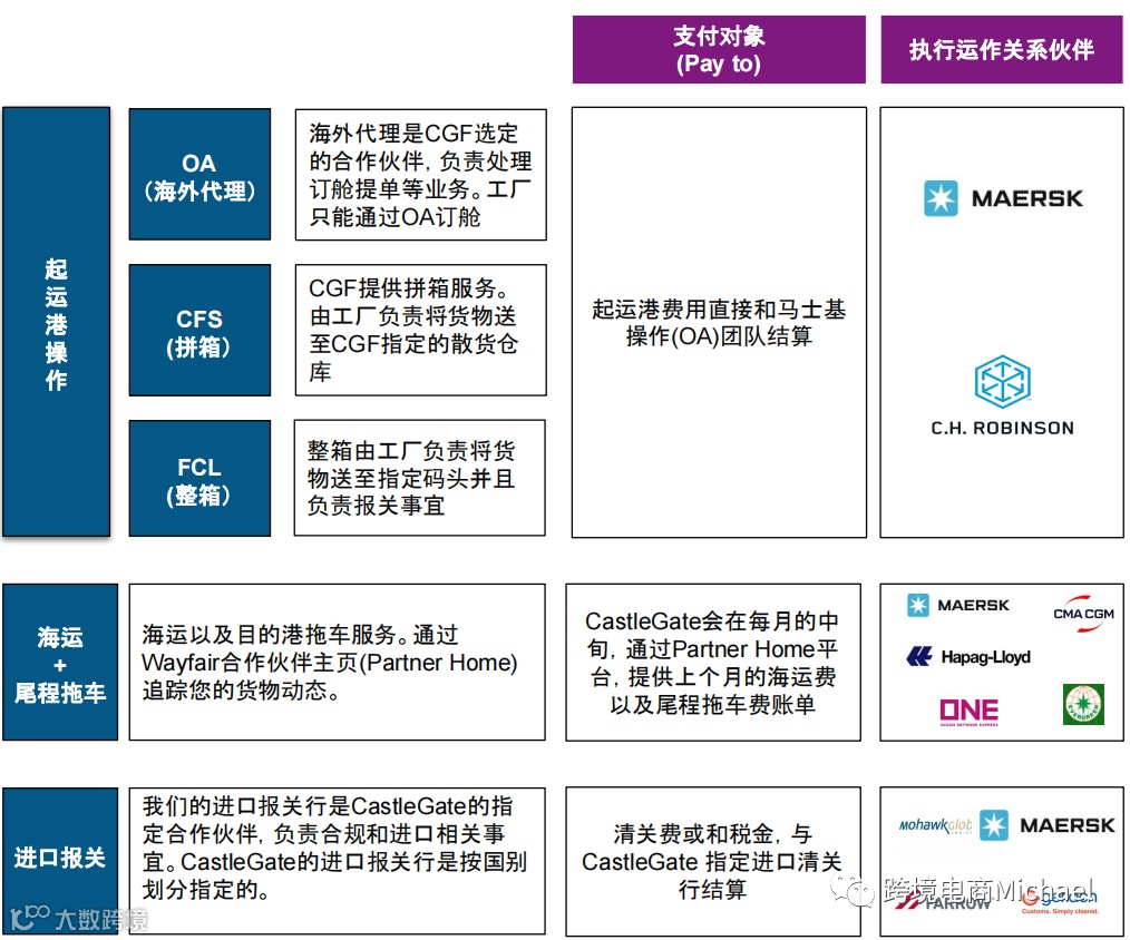 ●商品进入CastleGate仓库以后等费用以美金与Wayfair月结,并且CG提供30天的账期。