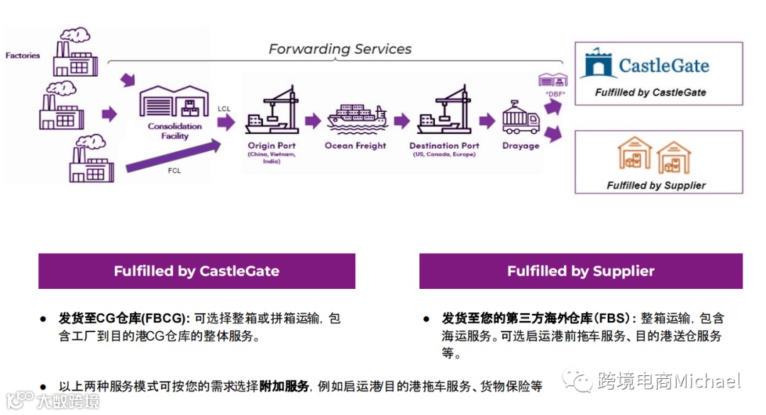 CastleGate Forwarding很荣幸能为您提供供应链解决方案,同时还支持您的货物进入海外仓的需求。随着我们规模的扩大,我们将持续继续惠及客户不同的供应链需求,无论是面向 CG 履行中心还是其他的业务场景。