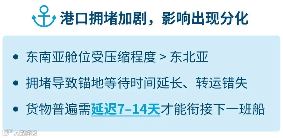 北美出口舱位情况因航线而异,部分紧张、部分宽裕;全球班期可靠性达65.2%,同比提升14.7%,但亚洲、欧洲、南美及西地中海港口拥堵仍制约航程时效。即便准班率改善,货物交付仍可能因港口积压延迟,造成到港与实际交付脱节。