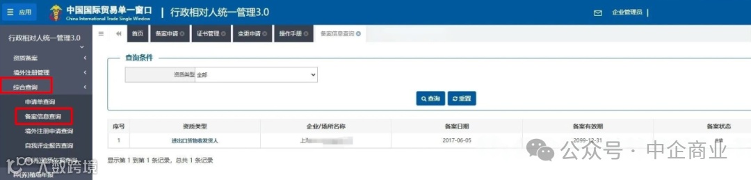 企业需通过中国国际贸易“单一窗口”(网址:https://www.singlewindow.cn/#/)在线提交备案申请[5]。