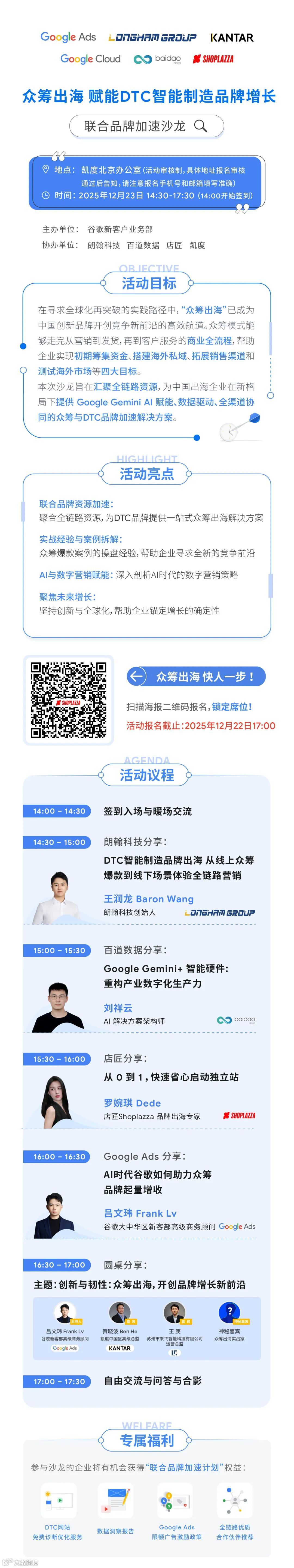 为助力高潜力出海企业抢占增长先机,谷歌北区新客团队联合店匠Shoplazza、朗翰科技、百道数据、凯度等头部伙伴,共同举办「众筹出海赋能 DTC 智能制造品牌增长」主题沙龙,深入探讨全链路加速方案。