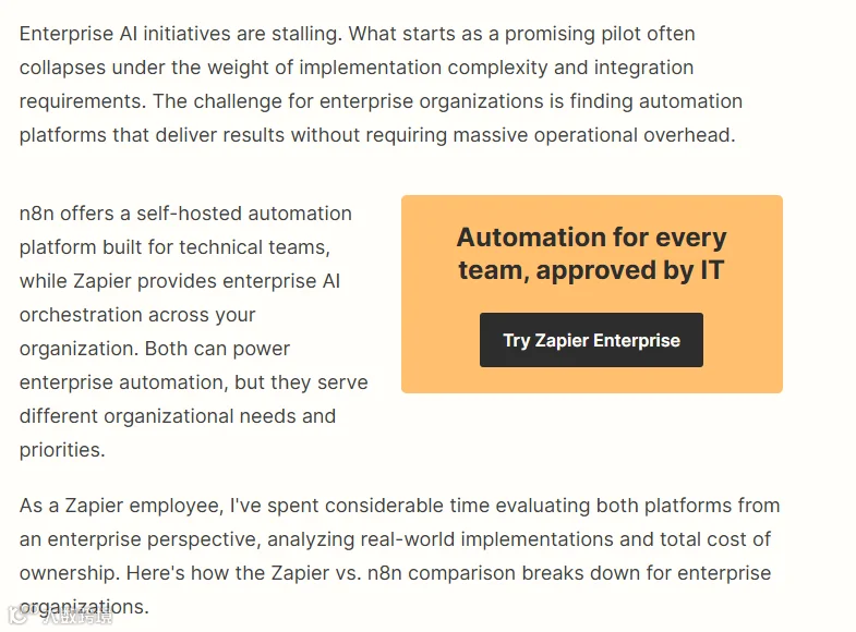 Zapier自己的对比文章也承认 n8n 的自托管控制力是显著差异点,同时指出自托管会带来运维与安全责任。
