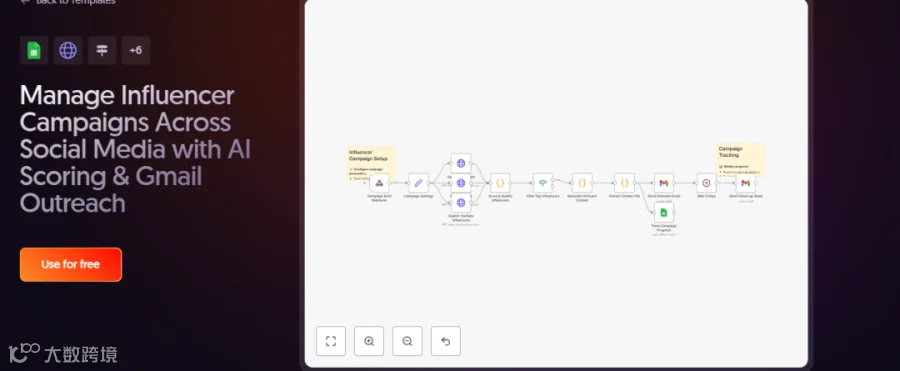 比如找红人,不再是人工去Google、YouTube、TikTok 一个个平台搜,而是提前告诉 n8n:
