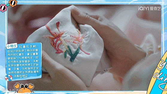 团综中出现的红姜花手绢、公主浮雕团扇