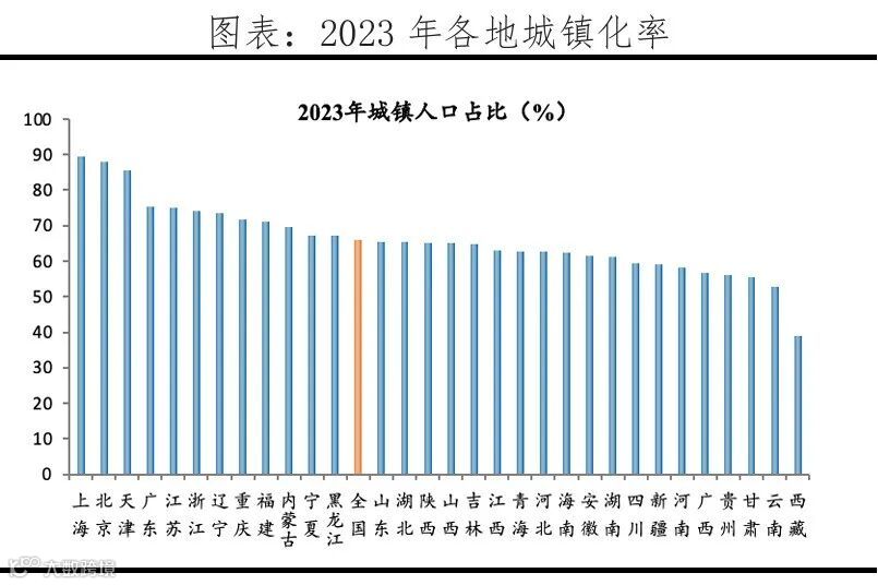 分区域看,东部发达地区城镇化率高于中西部地区。