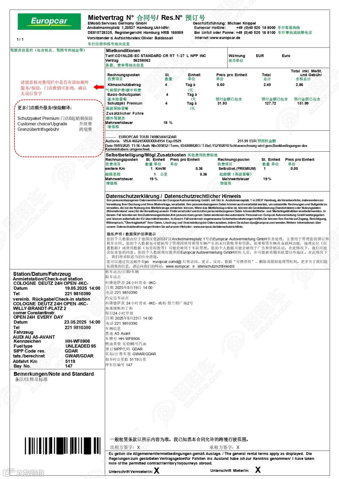 德国租车务必确认这一点! 有限里程超出部分要额外付费…