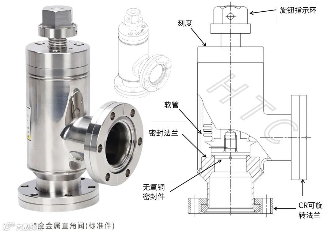 HTC日扬科技设计的全金属角阀适用于超高真空的环境下(10⁻⁷ Pa~10⁻¹⁰ Pa),其阀体、阀芯、密封件等均采用金属结构,密封垫片采用的是可耐大温差的OFCH无氧铜。所有系列的全金属阀门都经历过数百种严苛工艺条件下的各类应用,有几千份成功安装案例,其卓越可靠性得到充分验证。