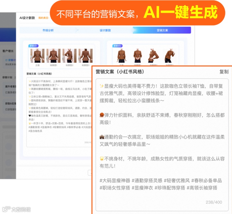 适配小红书、抖音、淘宝等不同语境,输出高传播性文案,降低内容创作门槛[2]。