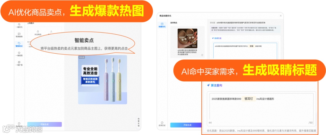 上传普通商品图,AI基于升级版生图模型与标题生成模型,自动产出高点击率封面图与吸睛标题,显著提升转化效率[3]。