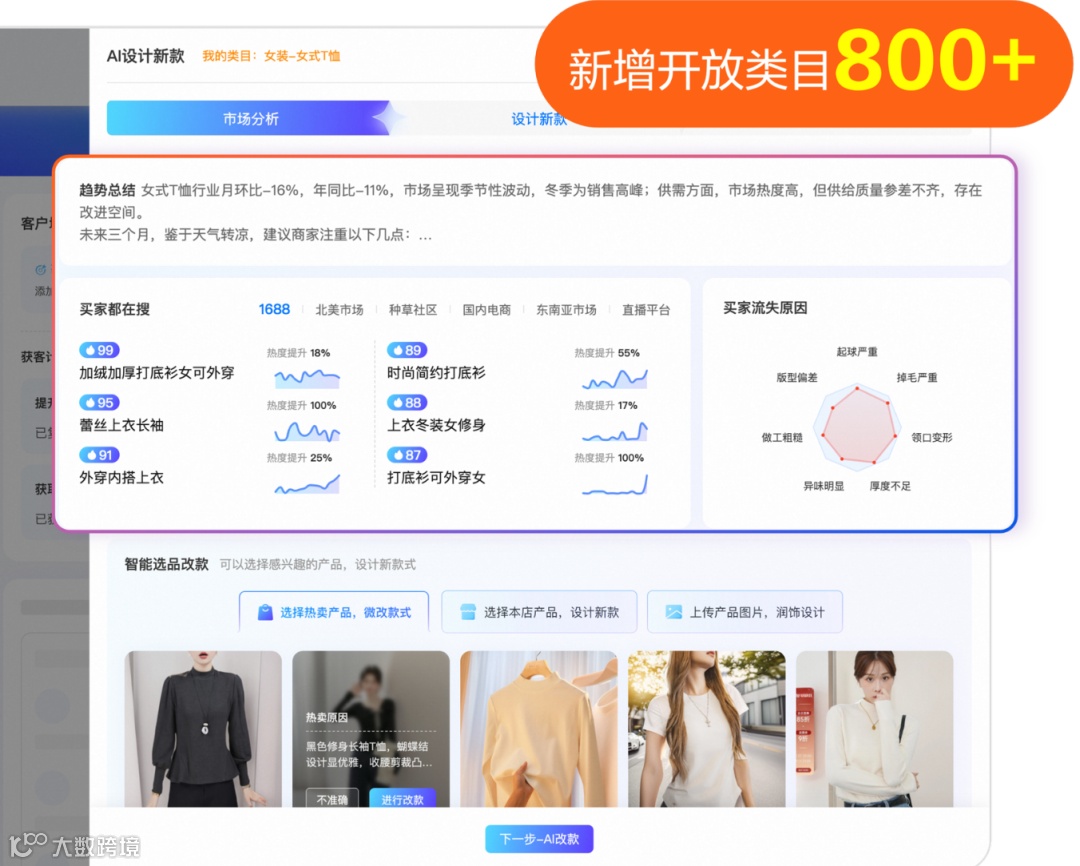 AI选品开款:新增800+类目,数据驱动爆款决策
