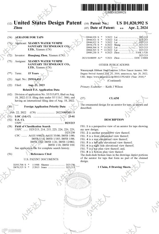 经查询,这款产品于2023年8月21日在美国进行外观专利申请的提交,于2024年4月2日获得了公告。