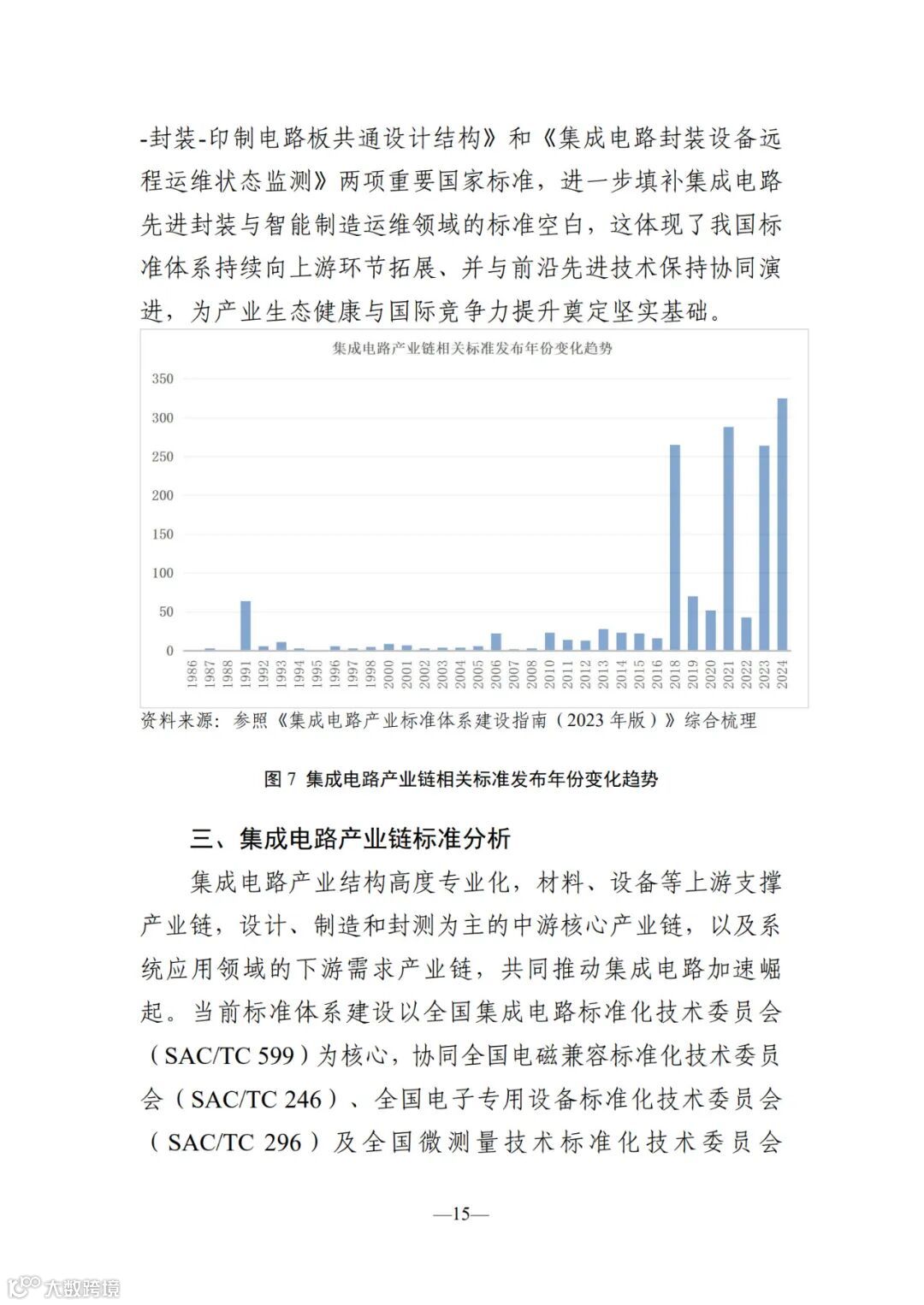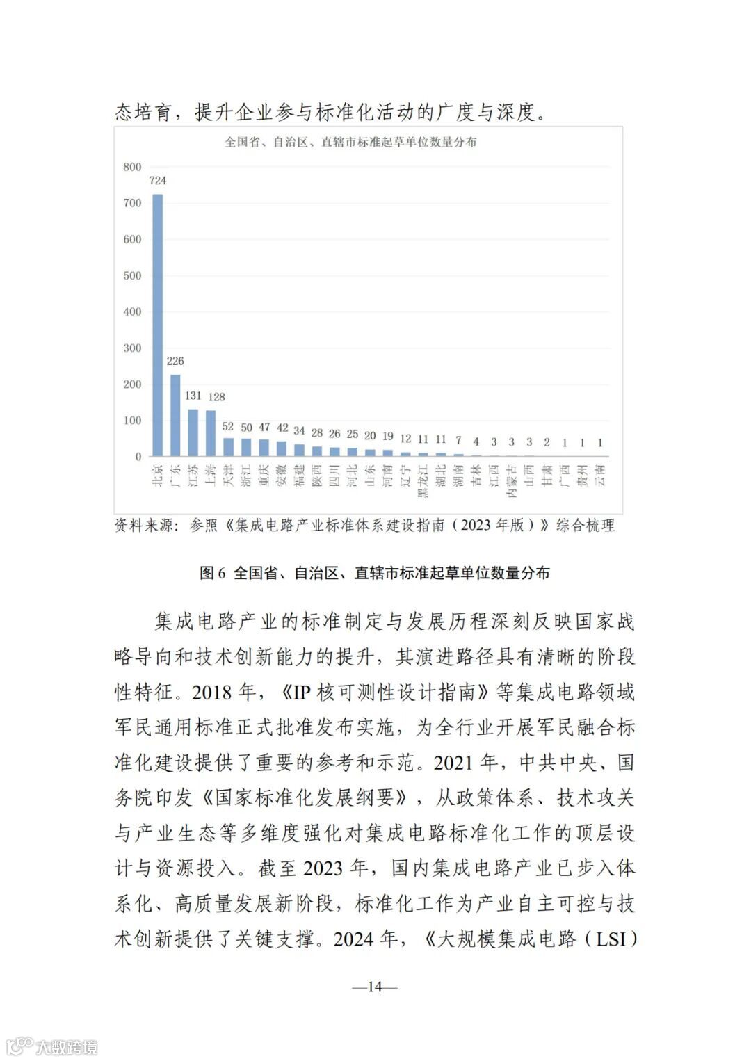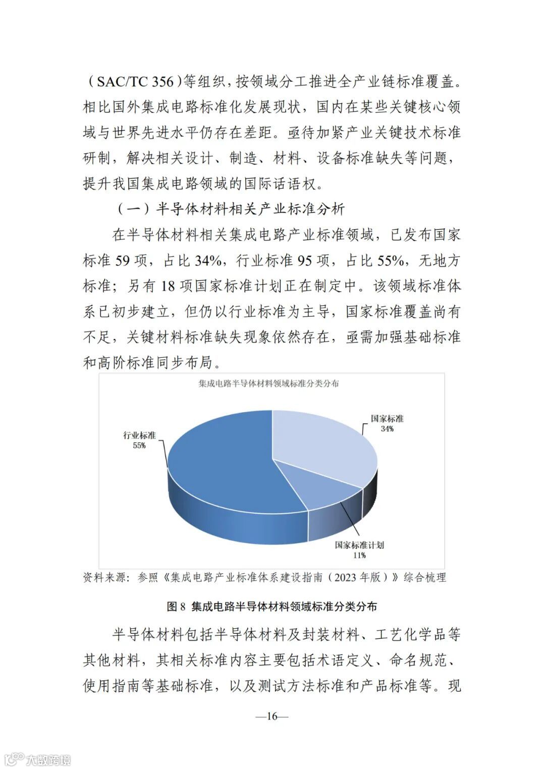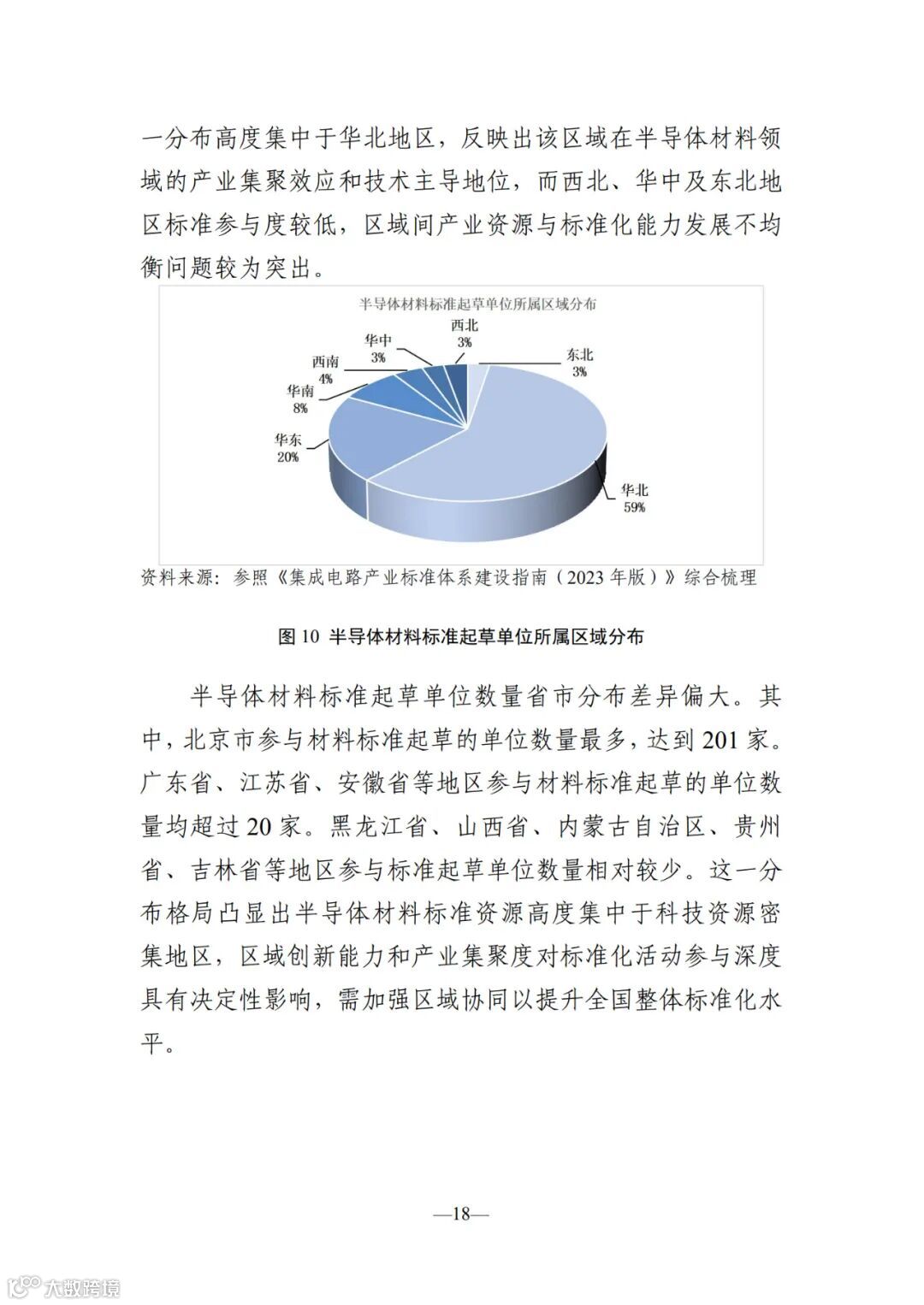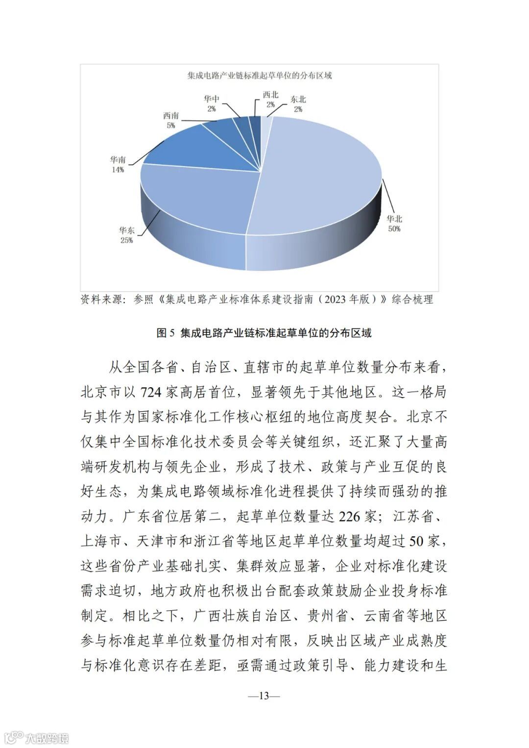 本报 告聚焦半导体材料、设备及芯片设计、制造、封装测试等关 键环节,全面梳理现行国家标准、行业标准、地方标准及国 家标准在研计划,深入分析标准类型与产业环节的匹配关 系,并解析起草单位的区域分布特征。