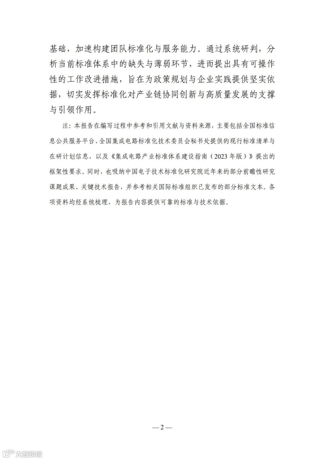 注:本报告在编写过程中参考和引用文献与资料来源,主要包括全国标准信 息公共服务平台、全国集成电路标准化技术委员会秘书处提供的现行标准清单与 在研计划信息,以及《集成电路产业标准体系建设指南(