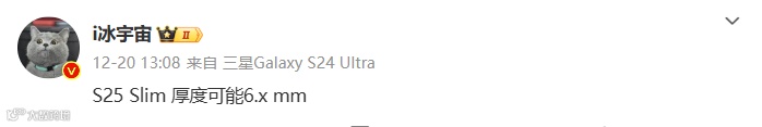 该博主还透露,三星Galaxy S25 Slim的厚度可能为6.x mm,屏幕尺寸为6.66英寸。