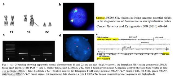 12:还要注意一种情况,是RT-PCR呈阳性,但因为是隐匿易位而EWSR1FISH断裂探针检测呈阴性的不符结果。其实也可通过FISH信号的不典型异常发现端倪,或可用EWSR1-FLI1融合探针来相互验证。