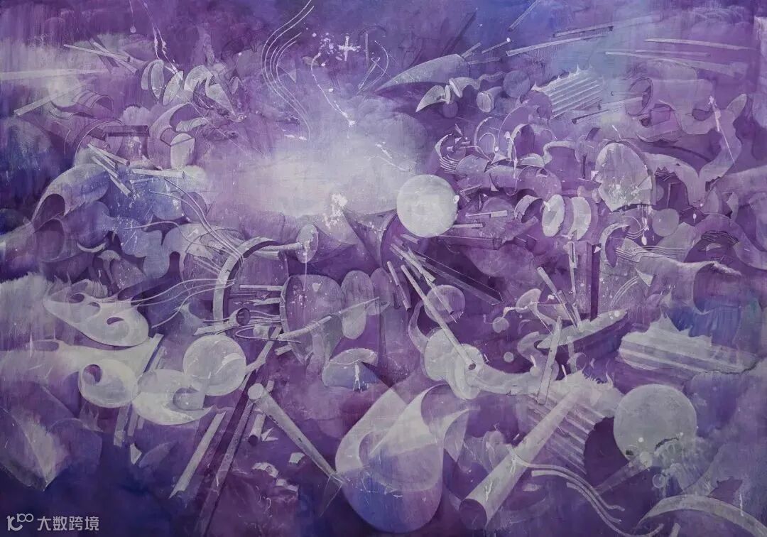 作品中所有白色的面或者线均为坦培拉技法所作。坦培拉作为一种古老的技法,稳定性极强, 甚至可以保持上百年,这种技法与想要表现的“关系”也是相得益彰)