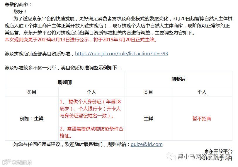 黑小马已经预告过,关于即将暂停自然人主体拼购店入驻的通知,近日京东出了正式公告。