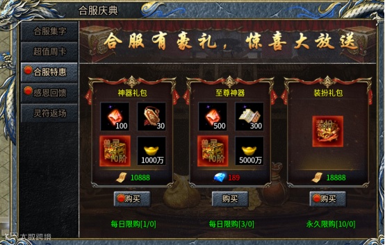 【合服庆典】【竞技助力】【超值特惠】:可以使用主播助力的灵符购买神器礼包和装扮礼包