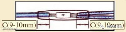 短接压接 端子处必须位于包扎中心。用胶带缠绕3-4圈。并在C范围内缠绕2圈。包扎牢固,不得有芯线露出,胶带松脱,滑动现象。