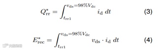 对于极小的体二极管电流,双极电荷的影响可以忽略不计,因为体二极管漂移区的电子空穴-等离子体浓度很低。在这种情况下,Qrr和Erec主要是电容电荷,即Qrr≈Qoss;Erec≈Eoss。