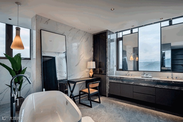 主卫原是一间卧室,最为精妙的设计在洗手台的镜子上,开合之间,壮阔的山水总能让人停驻。以自然为画,空间就像一个生命体,自有四季伦常,淡然而有力量。