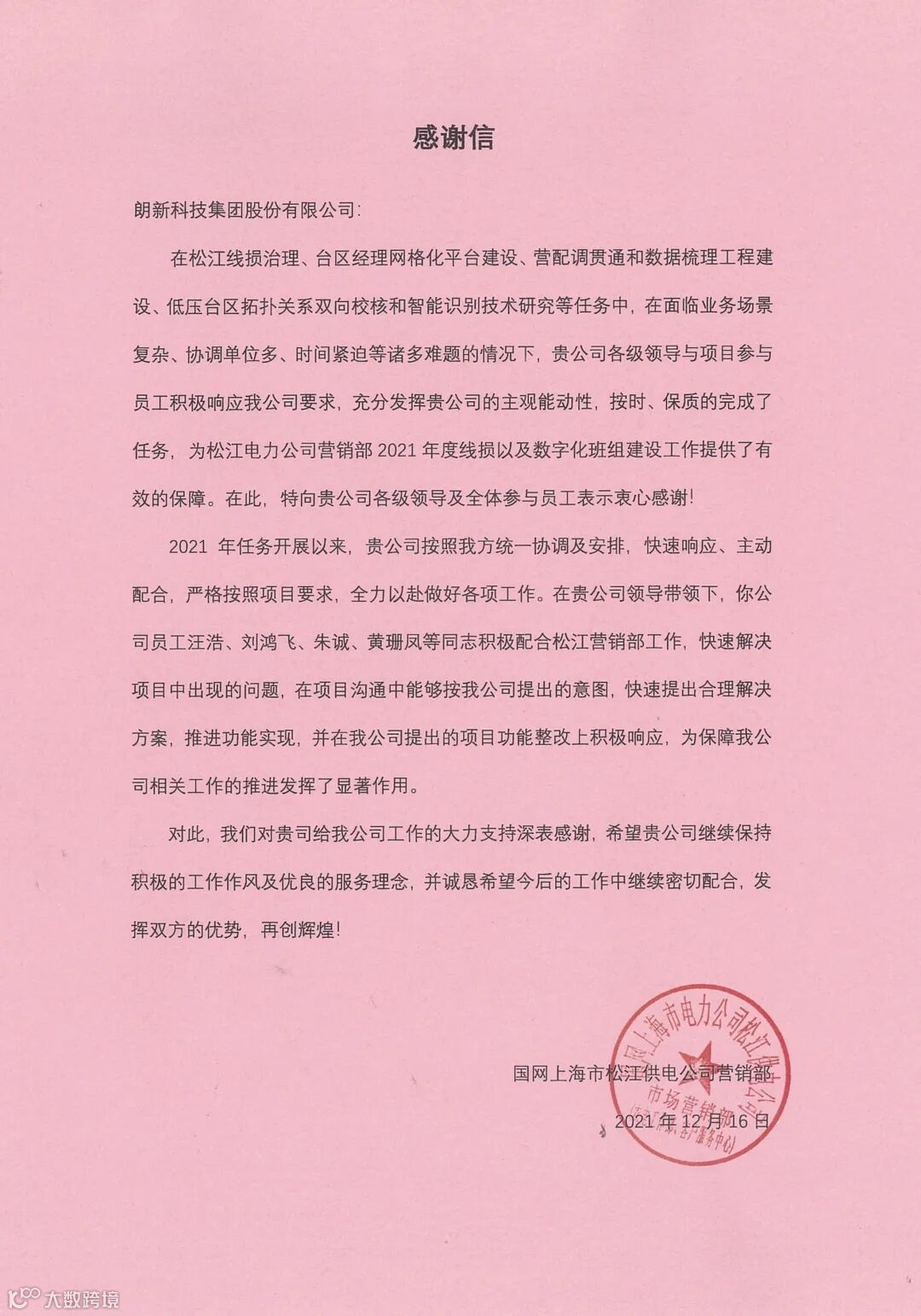 2021年是上海新一代采集系统建设运行的第三年,上海团队以采集系统深化建设改造这一重点任务为中心,高效执行计量采集指标监控分析、申校流程优化等各项重点工作,并且第一次作为系统建设厂商参与并全面投入到采集业务管控组和台区线损业务管控组的核心工作中去,积极响应、主动承担,收获了2021年度的第一封来自客户的感谢信。