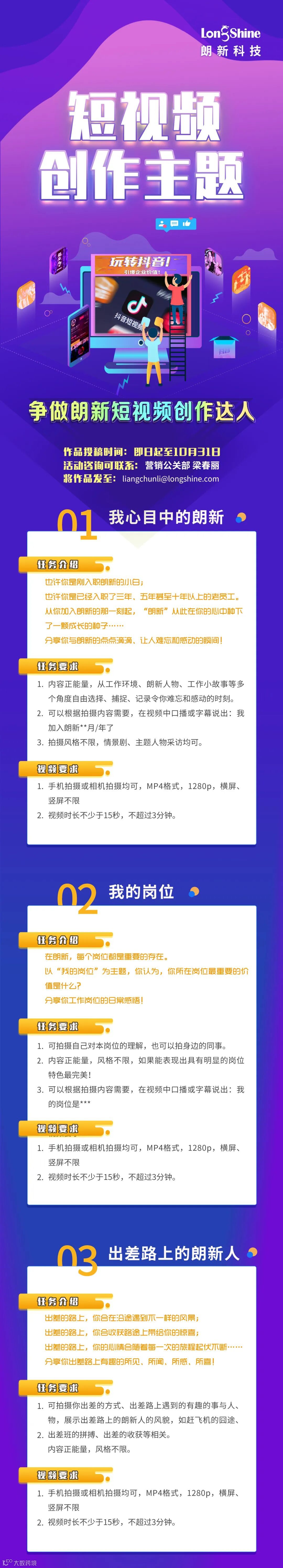 同学们要尽量按创作需求完成短视频的拍摄和制作,我们会根据投稿视频的主题贴合度、创意、视频质量等纬度进行评分哦。
