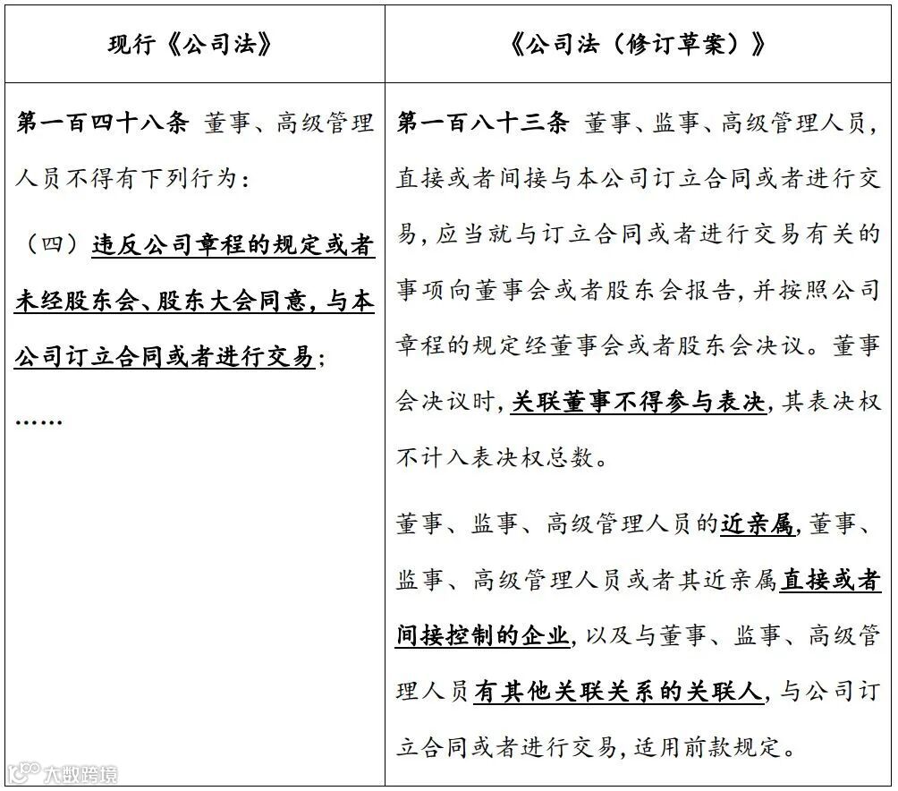 《修订草案》对董监高的关联(自我)交易进行了详细的规定: