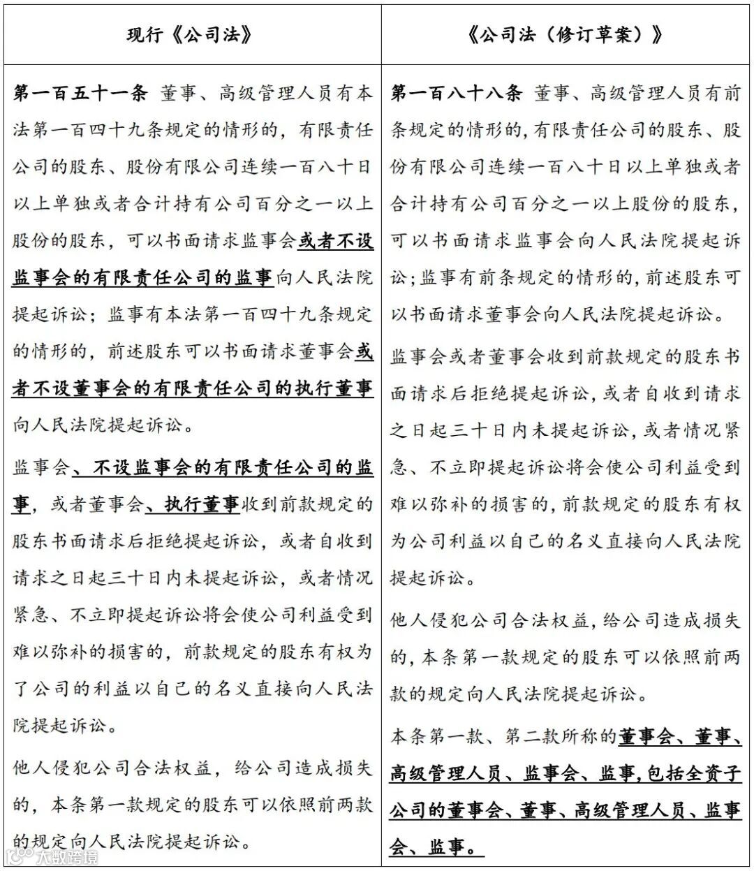 同时,为了防止小股东滥用权利,维持子公司的正常经营,《修订草案》规定,股东只能对全资子公司的董监高损害公司利益的行为提起诉讼,不包括控股公司和参股公司。