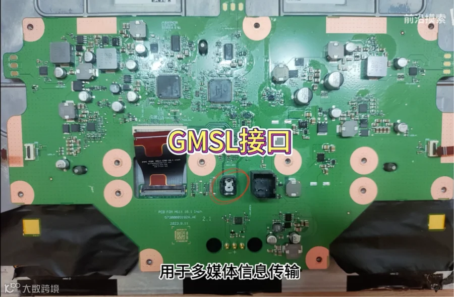 中控屏采用双路GMSL接口,未使用STP线束,而是双路COAX,推测后续搭载小尺寸屏的车型或可仅接一路GMSL。