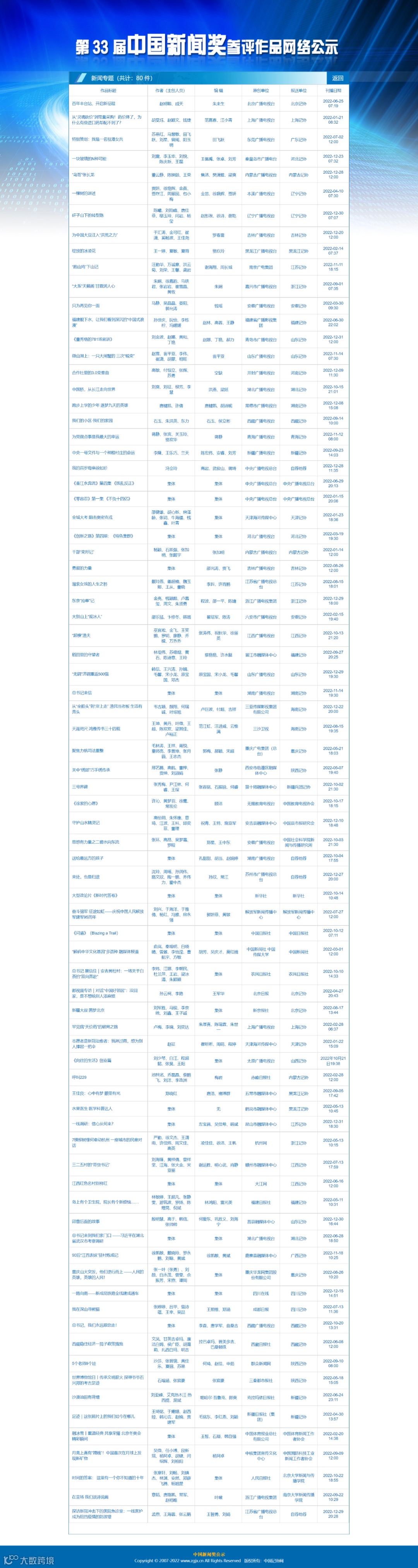评选工作结束后,评奖办公室还将在中国记协网、中国记协微信公众号公示评选结果,接受监督、评议。