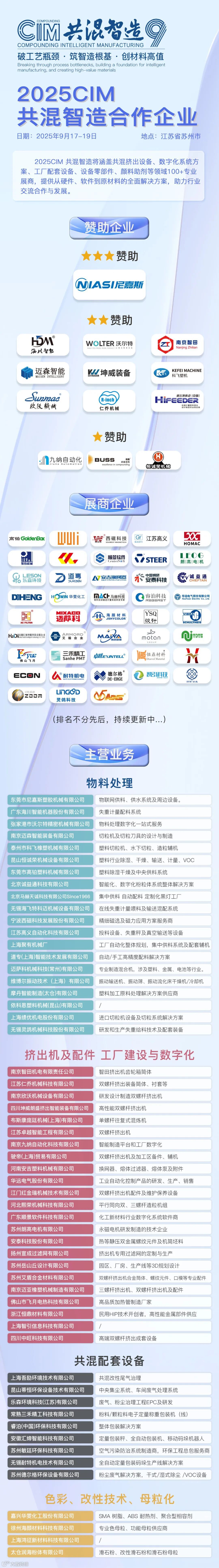 我们将直击高质生产、降本增效、高值创新的核心命题,推动共混产业从“经验驱动”向“数据驱动+技术驱动”跃迁。