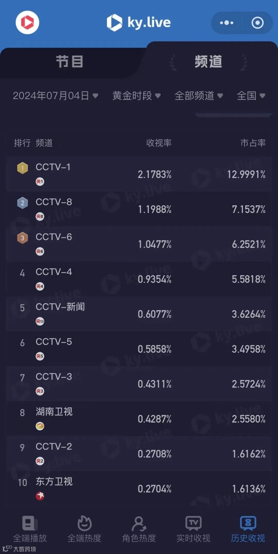 看实时收视数据,点击进入酷云ky.live小程序↓