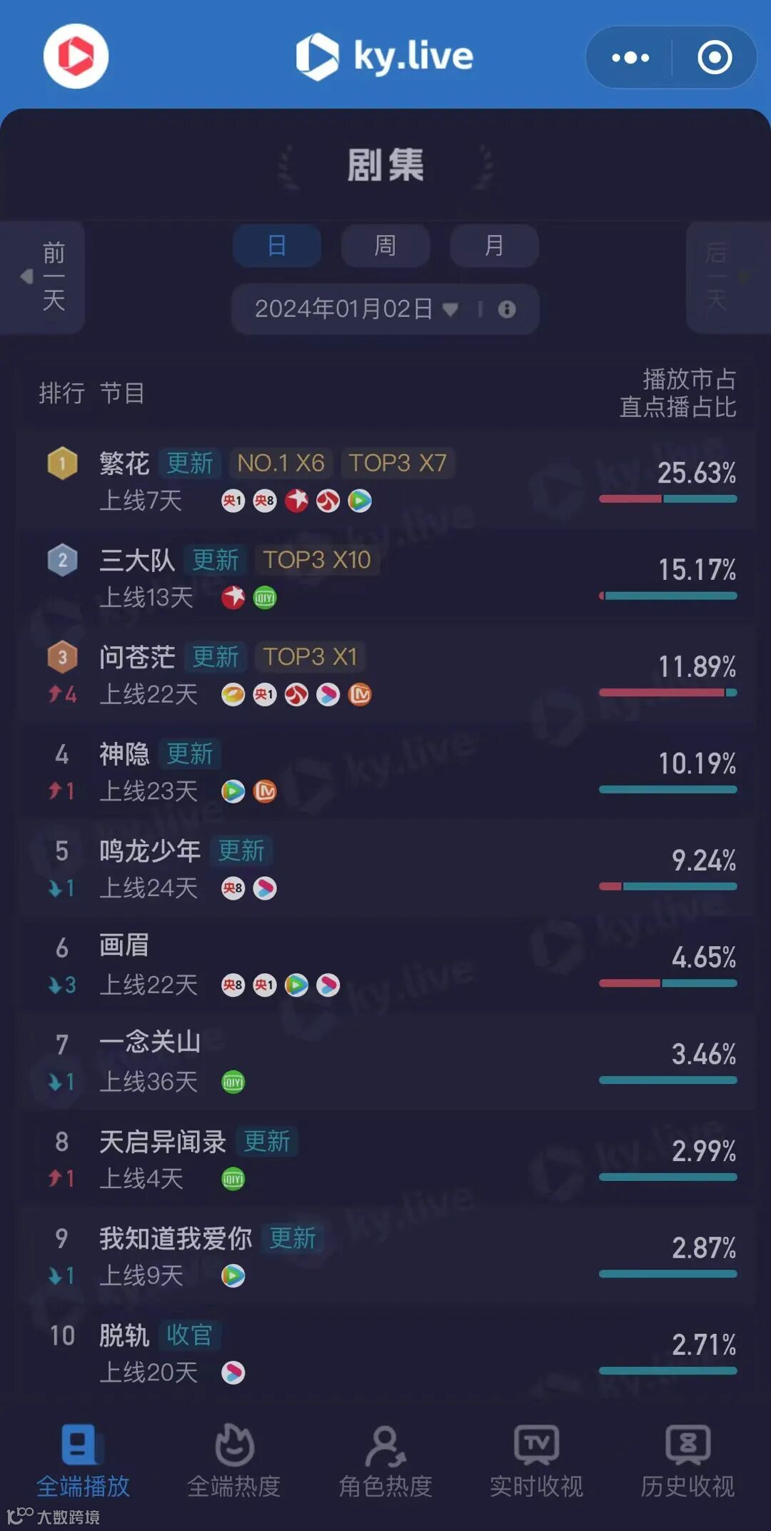 看实时收视数据,点击进入酷云ky.live小程序↓