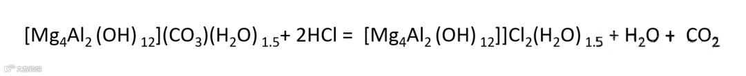 对于类水滑石类除酸剂,氯离子被插入层类水镁石片层中间,可以进行层间阴离子交换,并可将所交换的阴离子固定于稳定的晶体结构中。这种阴离子交换特性是由阴离于的大小、阴离子所带的电荷和镁铝的摩尔比决定的。