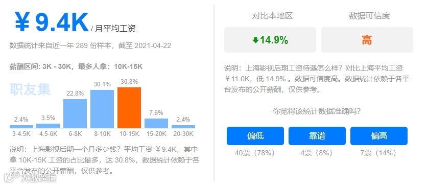 据招聘平台显示:影视后期制作的工资普遍都在7-15K;