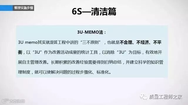 清洁(SEIKETSU):将整理、整顿、清扫进行到底,并且制度化,经常保持环境处在美观的状态。目的:创造明朗现场,维持上面3S成果。