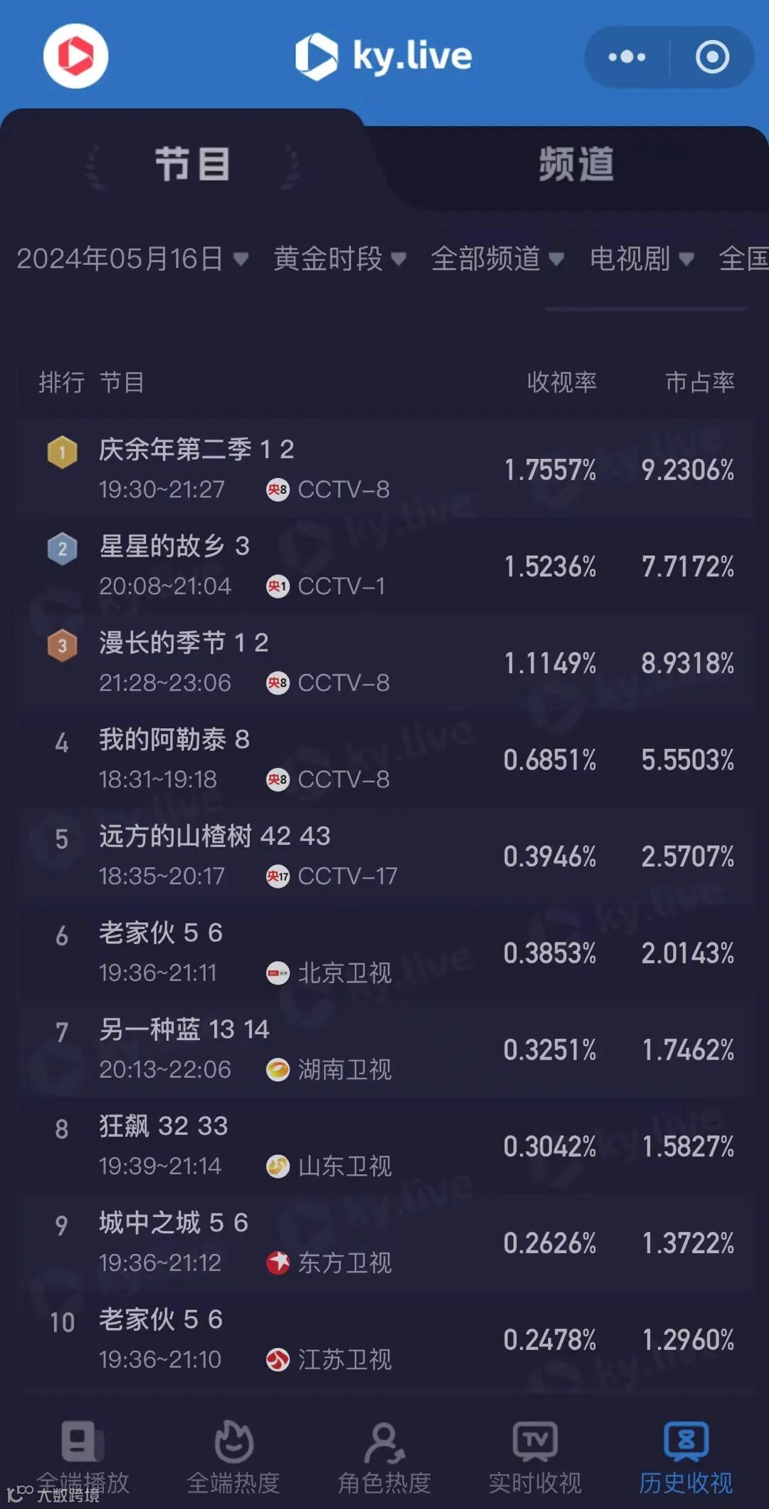 看实时收视数据,点击进入酷云ky.live小程序↓