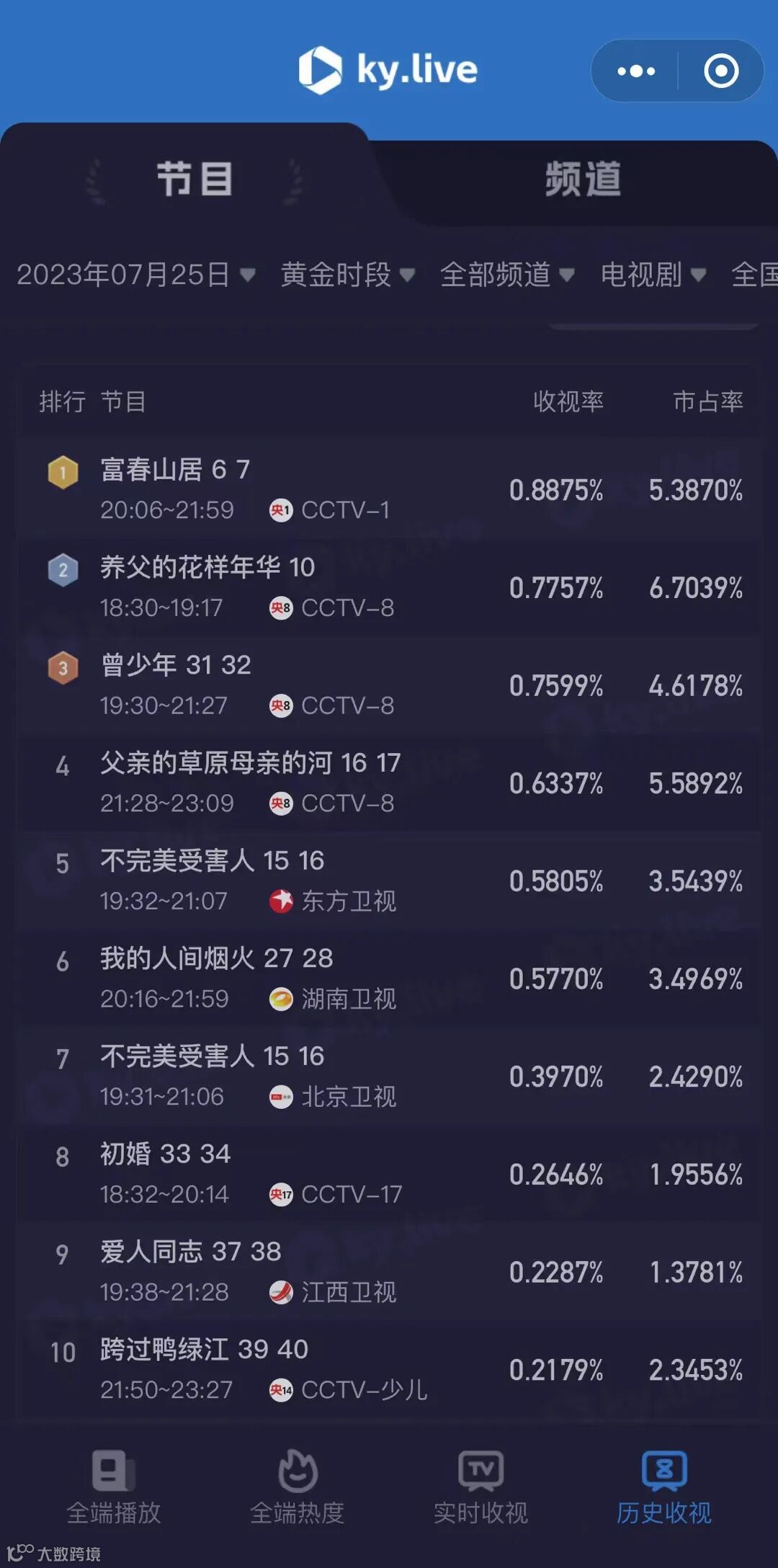 看实时收视数据,点击进入酷云ky.live小程序↓