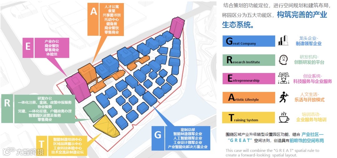 A:好的设计作品一定是跳出作品本身,站在更高层面进行思考。比如设计一个产业园,必然需要了解时代发展趋势,当下甚至未来人才对工作环境的喜好。因为办公环境是看得见摸着的,在一定程度上它可以改变公司的工作方式,甚至是整个组织升级变革的前奏与助推器。如果你是一个区域的管理者,想要吸引产业及公司,首先就需要构建一个吸引人才的环境。