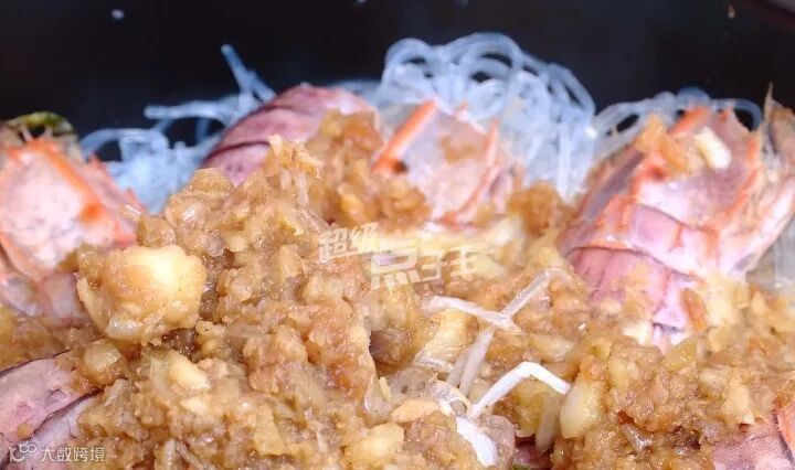将濑尿虾放在粉丝上,淋上蒜蓉,加半碗水。
