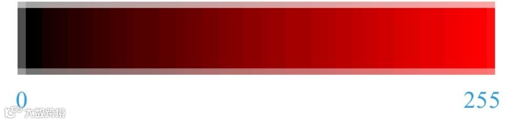 每种颜色就可以对应有0~255一共256级的亮度。例如,对于红色,亮度值从0~255。