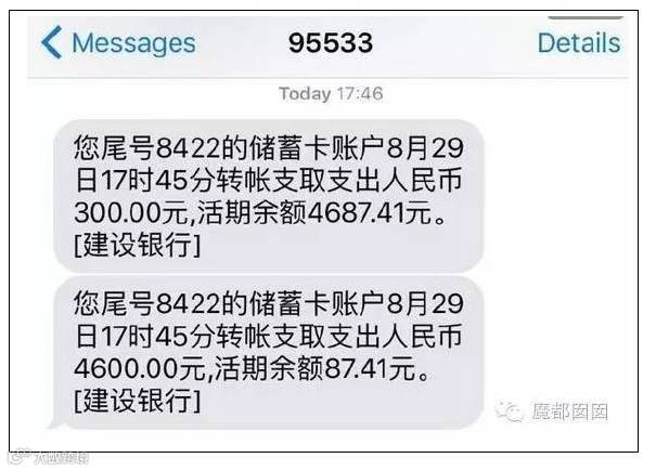 大家请看这个短信的抬头,的确是95533 ,以下同, 光就这步,估计很多人就要吓坏了。