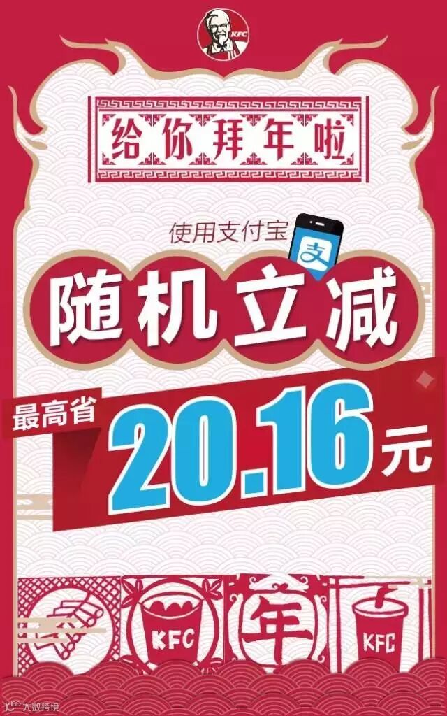 活动内容:在肯德基使用支付宝当面付买单成功,即可享受立减优惠,每笔最低立减0.1元,最高立减20.16元;